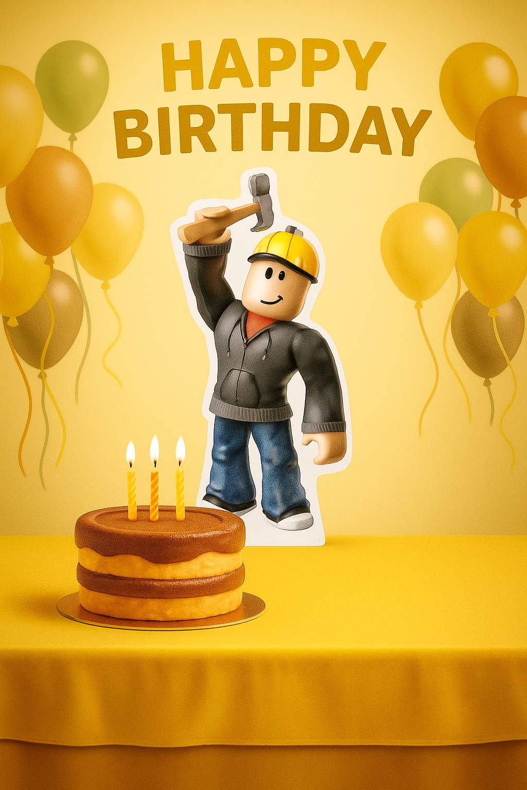 Ayaklı Pano Roblox Builderman 35x17 cm – Doğum Günü Masa Süsü & Oda Dekoru