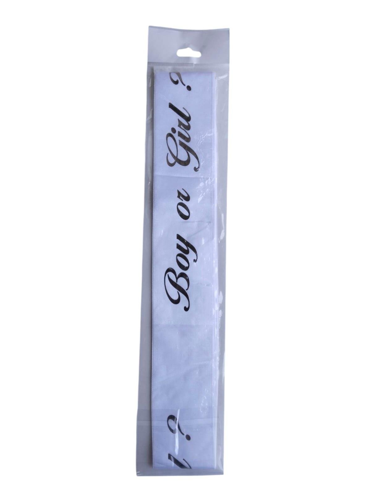 Cinsiyet partisi Kuşağı boy and girl beyaz üstü gümüş varaklı saten kumaştan kuşak 205cm*6cm