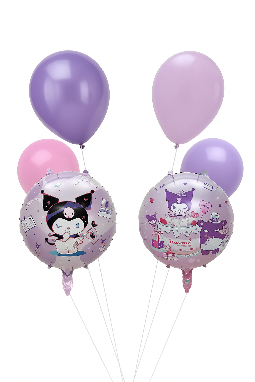 Mor zeminli Kuromi folyo balon, doğum günü ve konsept partilerde tek parçada güçlü bir görsel etki sağlar. Kalın folyo malzeme formunu korur; fon dekoru, masa önü ve fotoğraf köşelerinde dikkat çeker. Valfli yapısı sayesinde kolay şişir-indir ve tekrar kullanım imkânı sunar.