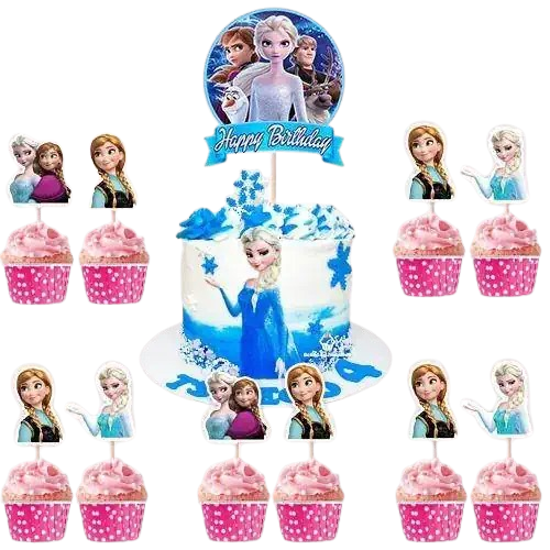 Frozen Elsa  Cake Topper Set ile doğum günü pastaları ve cupcakeler çok daha şık! 20 kürdan, 25 muffin kapsülü ve 1 topper’dan oluşan bu set, gıda temasına uygundur.