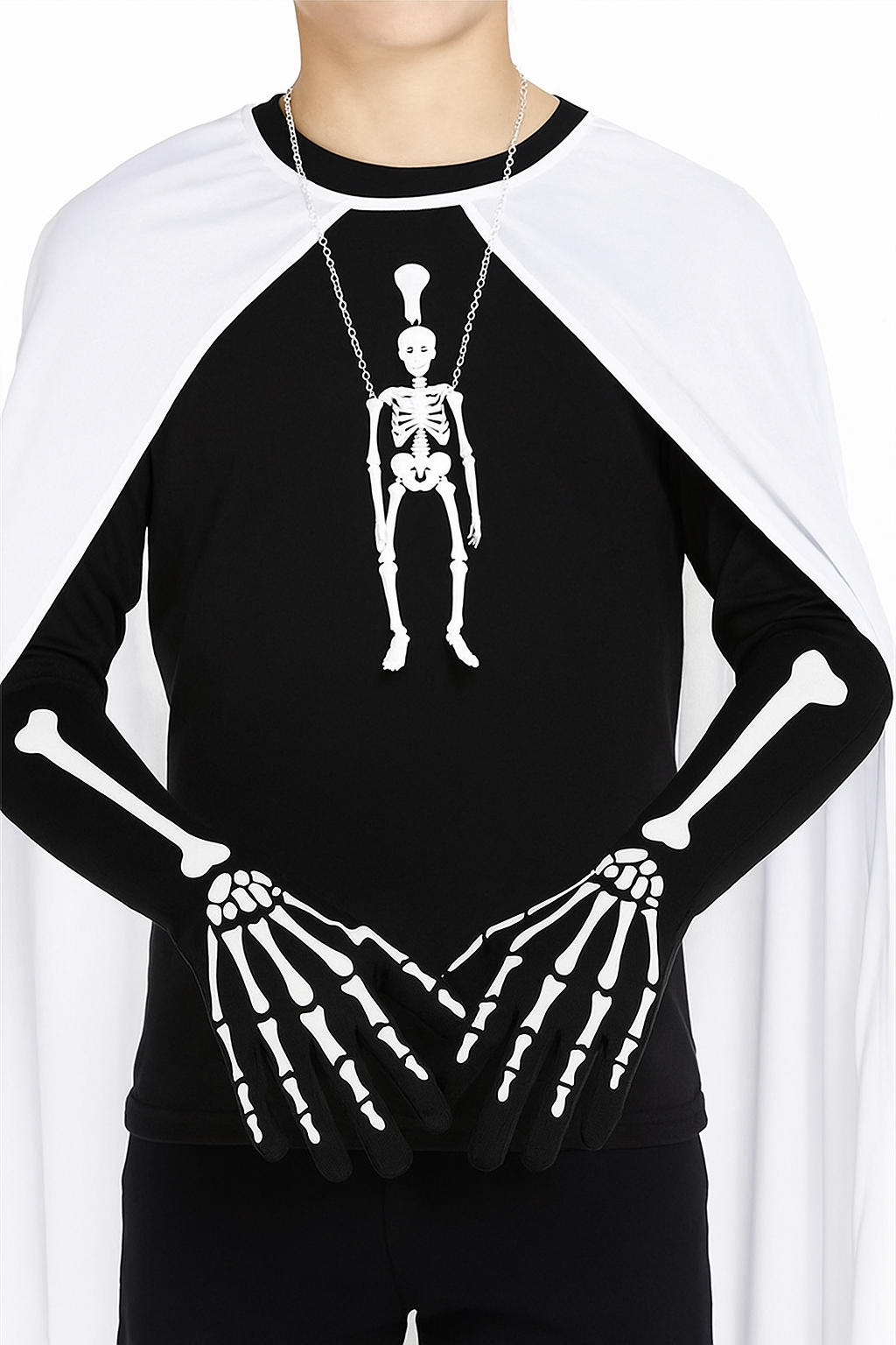 Tek ve Vurucu Kombin (yalnız bu ürün için): Simsiyah pelerin + iskelet maske; eldivenleri göğüs hizasında “pençe” pozuyla öne çıkarın.