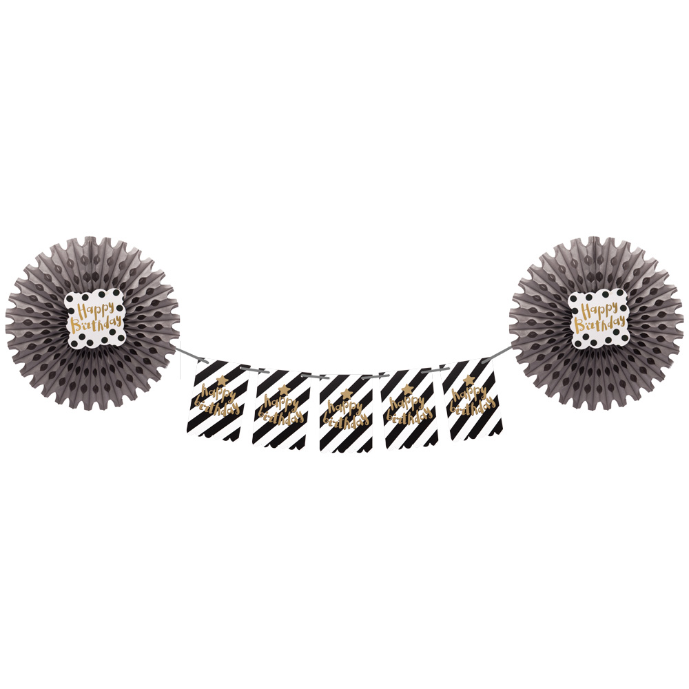 Happy Birthday yazılı 2 ucu Gümüş Yelpazeli  Afiş Doğum Günü Süsü