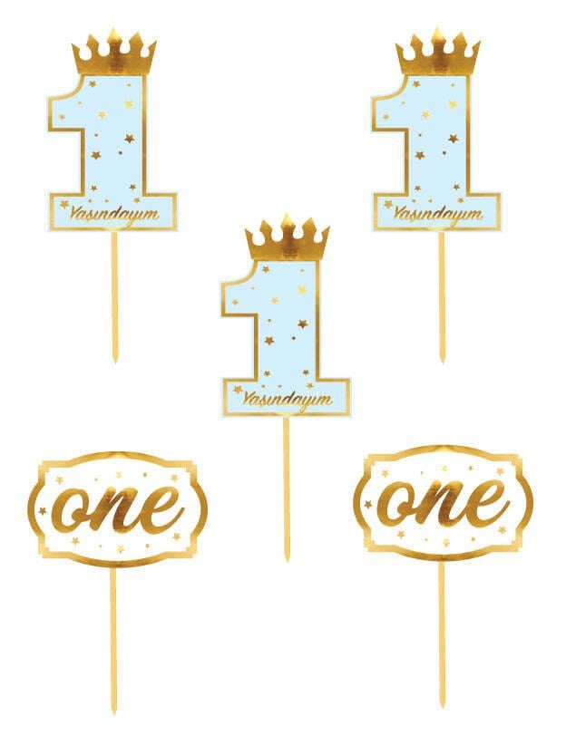 Mavi 1 yaş konuşma balonu seti, 3 adet rakam "1" (9x17 cm) ve 2 adet "ONE" yazısı (17x9 cm) ile toplam 5 parçadan oluşur. Erkek çocuklarının ilk yaş partileri için ideal süsleme ve fotoğraf aksesuarıdır.