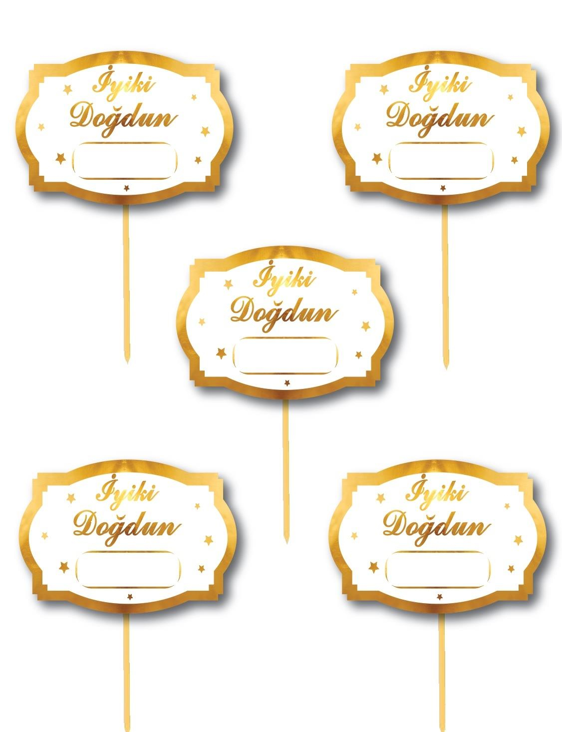 Konuşma balonu 5li Set İyi ki Doğdun Altın Varak Yazı ve Varak Çerçeve Doğum Günü Akasesuarı 17x12cm