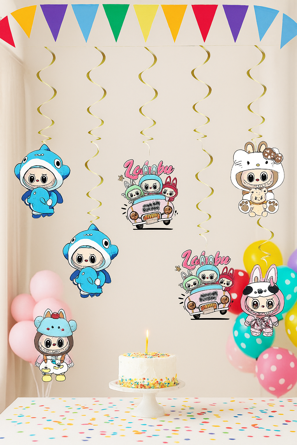 Labubu Temalı Helezon Varaklı Asmalı Tavan Sarkıt Süs 6 lı paket Labubu Doğum Günü Konsepti