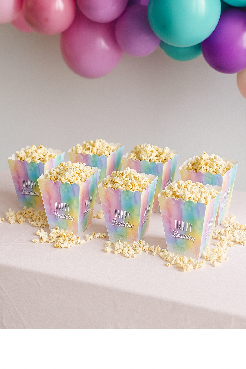 Makaron desenli Happy Birthday mısır & popcorn kutuları ile partilerinize renk katın! 8’li paket, orta boy (7.5 x 11 cm), gıda ile temasa uygun kaliteli kartondan üretilmiştir.